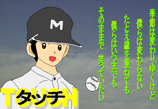 作者よりやさしいやさしい(?)素麺さんが一万カウント記念CGあげゆ♪中身は魔女宅♪フォーラムのテーマにぴったりだぁ♪・ ・ ・ ・ ・ ・ ・ ・ ・ ・(つっこまないよーに ^^;) 解説MIDIデータリンク関係でお世話になっている、素麺さんから魔女宅なCG頂きました!CGまでやってたなんてびっくり!多才ですね(^^)ちょうど魔女宅のビデオも発売されたし、時期柄がよいですね(^^)オリジナルは背景なしのCGでしたが、何か海の写真をということで、適当に(^^;;僕が勝手に入れてみました(^^;;「ちょうど良い海の写真が見つからなかった」そうですが、これもまずいかも・・・才能ないですね・・・僕(^^;;; 秘蔵の(?)CGを記念に下さった素麺さんに感謝! |