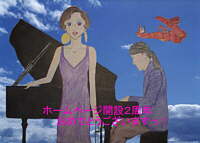 作者より一応ジーナとポルコの飛行艇ですで、ピアノを弾いているのは若かりしき頃の久石さん・・・のつもりです。 色鉛筆で色塗りしたので汚くてごめんなさい。 いつか出直しますっ! 解説「ねずちゃんのページ」2周年記念ということで、フォーラムで特にお世話になっているNANAさんから手書きのイラストを頂きました!デジカメで撮ったとのことでなかなか接写が大変だったのではないかと思います。それにしても、久石さんがホント若いよ!(笑)有り難う、NANAさん!! |