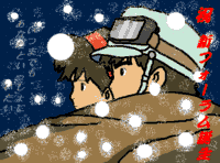 作者よりふぅ〜たいへんでしたぁ(^^ゞなんか、雪がへんになっちゃいまして・・・ちょっと、変かな・・・というCGです(-_-;) でも、一生懸命描いたので見てやってくださいまし<(_ _)>解説10/10、それはこのフォーラムがさらに大きくなることを予感させる日。フォーラムも早いもので開設3ヶ月になります。そういうわけではないのですが(^^;この日にリニューアルして、新フォーラム誕生となりました。雪の降る中、パズーとシータは何を見つめているのだろうか・・・これから来ようとする寒い冬。でも、フォーラムはそんな中でも暖かい! 力作を送って下さったパズ〜に感謝・感動!! |