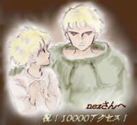 作者よりナウシカとセルムですぅ(*^-^*)似てなくって、ごめんんさーい(汗) 解説10000カウント記念についに3枚目のCGを頂きました!こんな僕に、こんなに下さっていいのでしょうか・・・(T_T)大粒の涙です!!! しずくさんの画風とってもいいです!!流石ですね! 貴重な記念CGです!ありがとう!! |